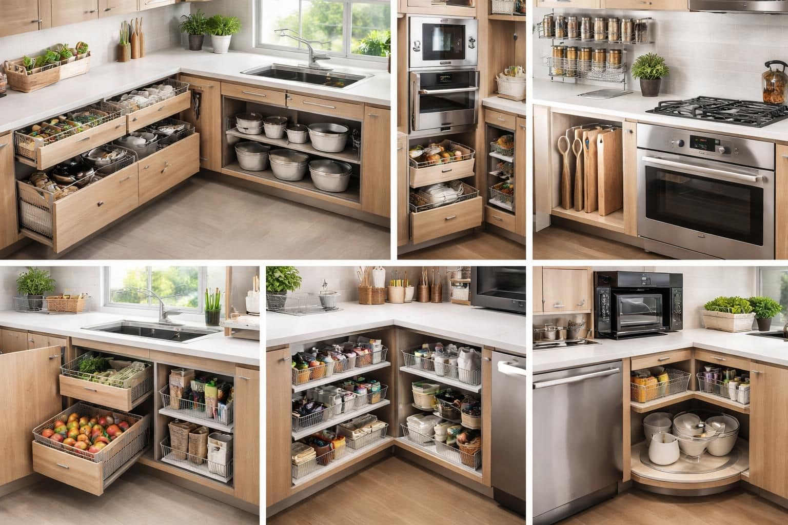 Unités d’étagères d’angle : rangement cuisine pour coins optimisés
